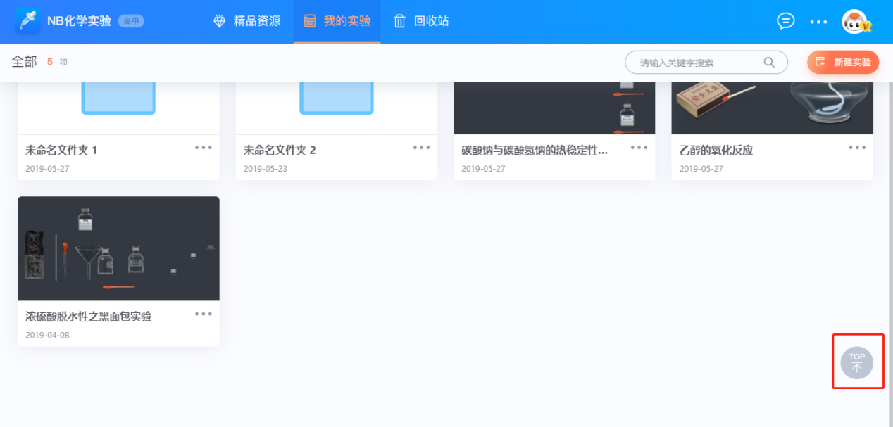 【文件夹】可以移入移出相关的实验或者文件夹中,点击文件夹可进行查看文件夹中的相关实验;